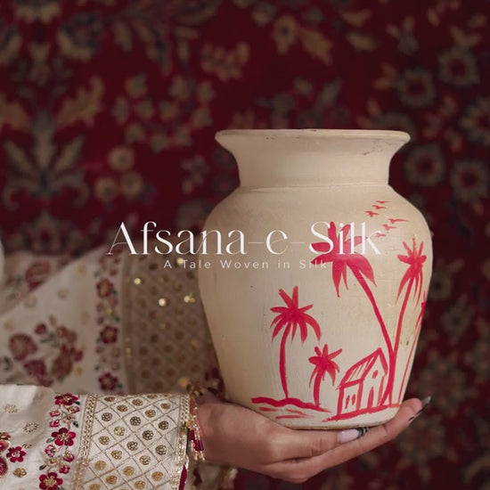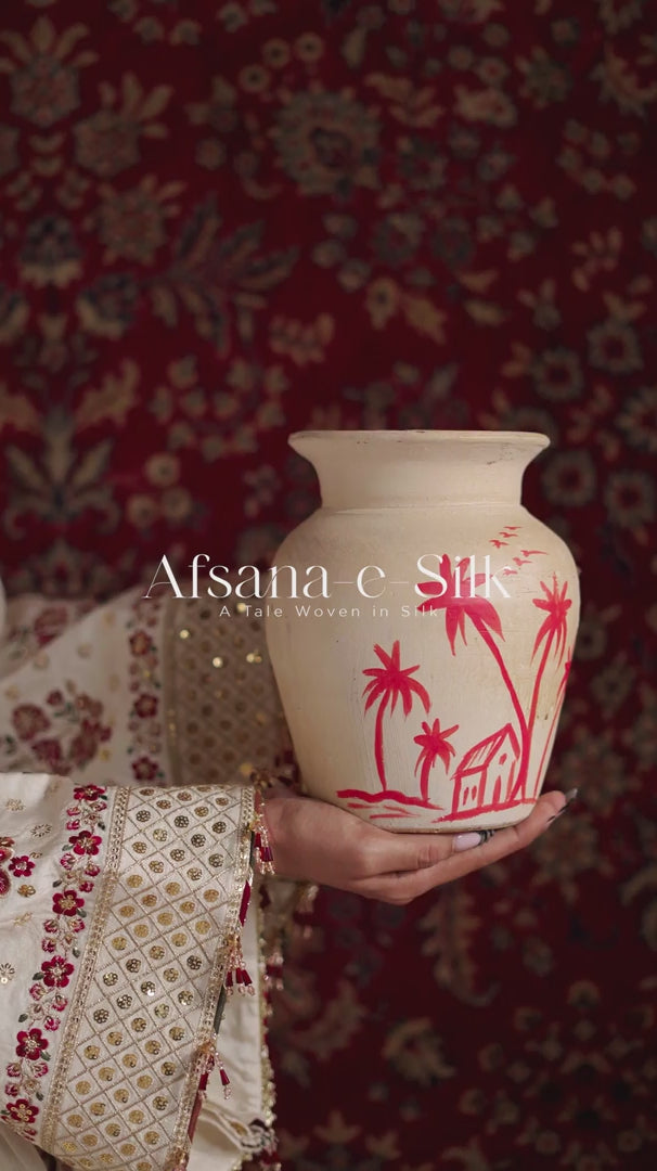 Organza Embroidered Hand Made Neck Line. Raw Silk Embroidered Front. Raw Silk Embroidered Sleeves. Raw Silk Fabric For Back. Chiffon Embroidered Dupatta. Raw SilkEmbroidered Sleeves Border. Raw SilkEmbroidered Dupatta Border. Raw Silk Embroidered Trouser.
