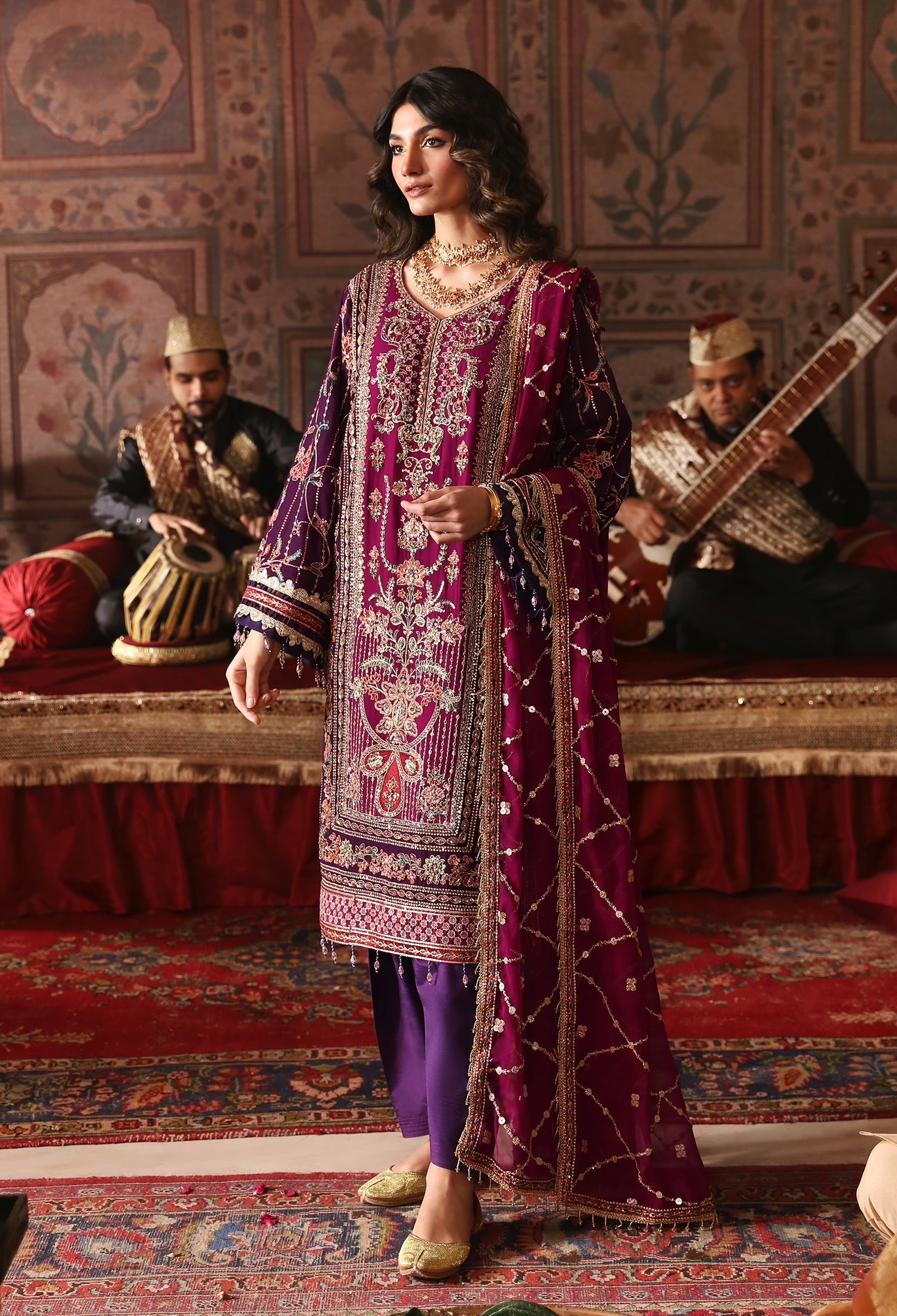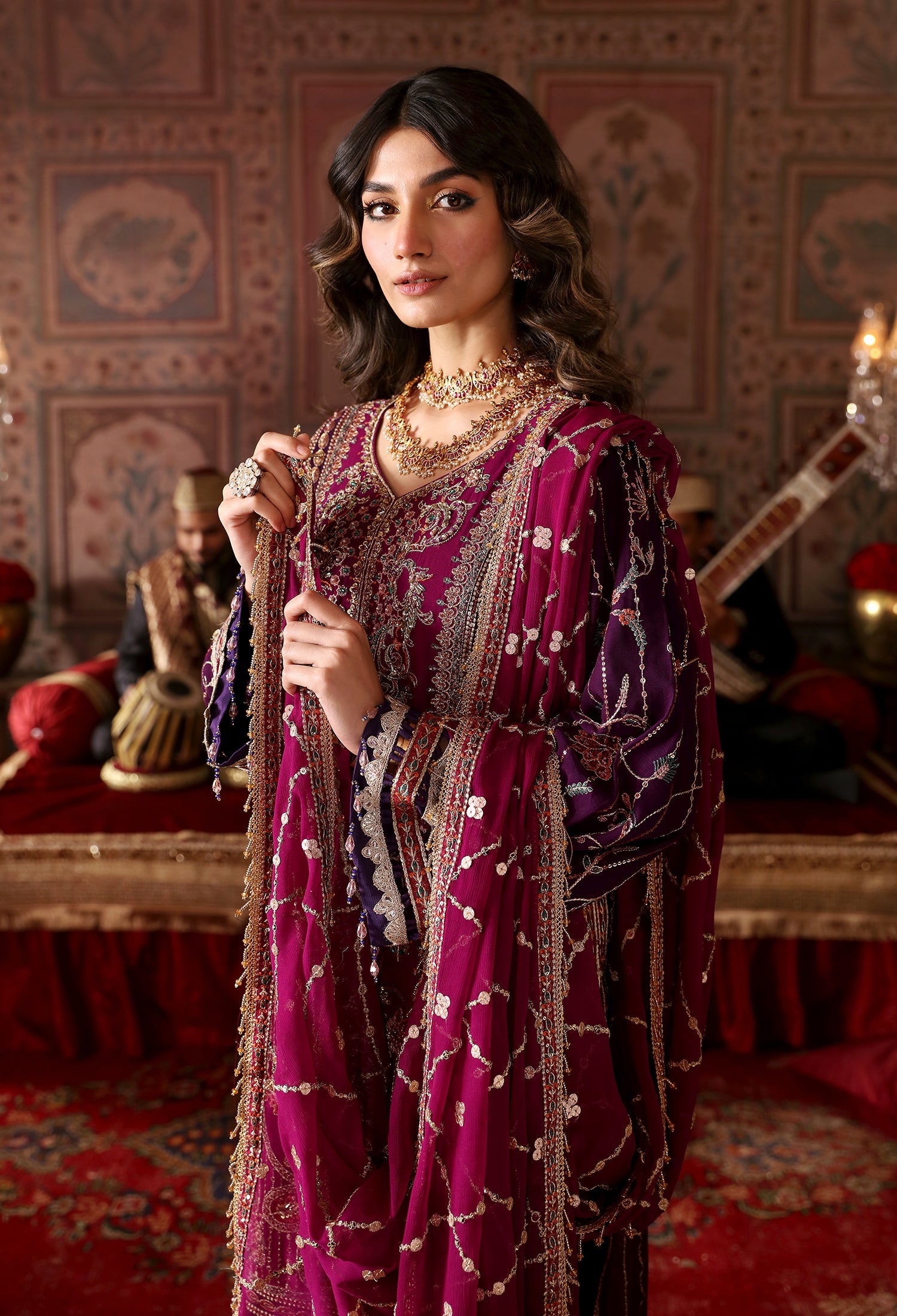 CHIFFON EMBROIDERED HAND MADE FRONT. CHIFFON EMBROIDERED BACK. CHIFFON EMBROIDERED SLEEVES. CHIFFON EMBROIDERED DUPATTA. ORGANZA EMBROIDERED FRONT AND BACK BORDER. ORGANZA EMBROIDERED SLEEVES AND CHALK LACE. DYED RAW SILK TROUSER.