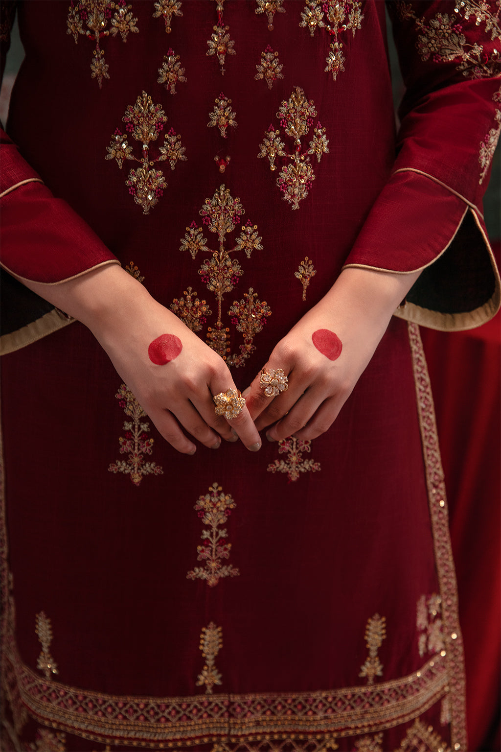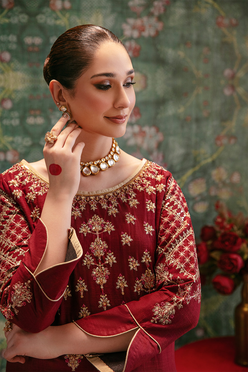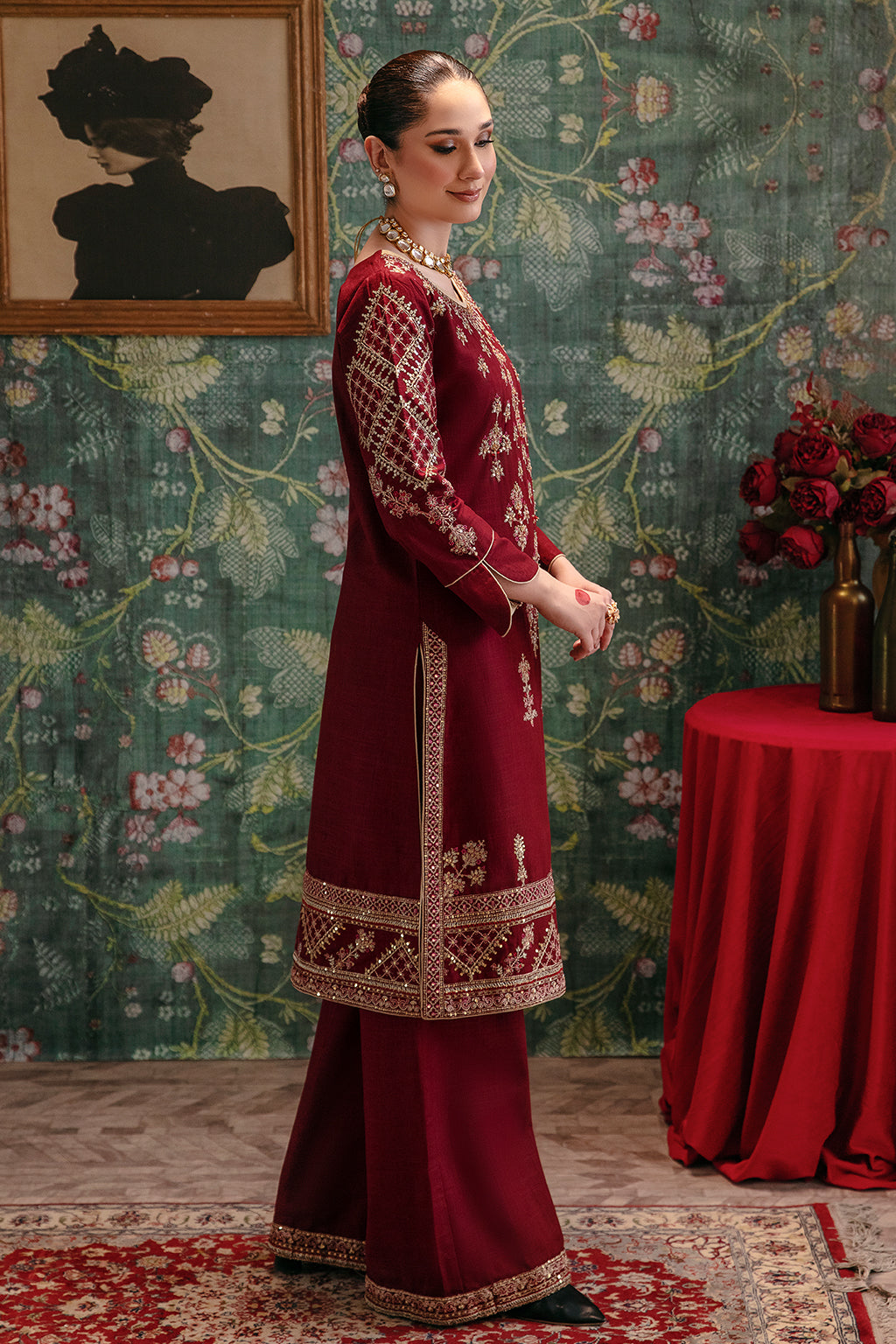A captivating embroidered khaddar ensemble adorned with enchanting adda work, paired flawlessly with a khaddar trouser. A nod to tradition with a contemporary twist.