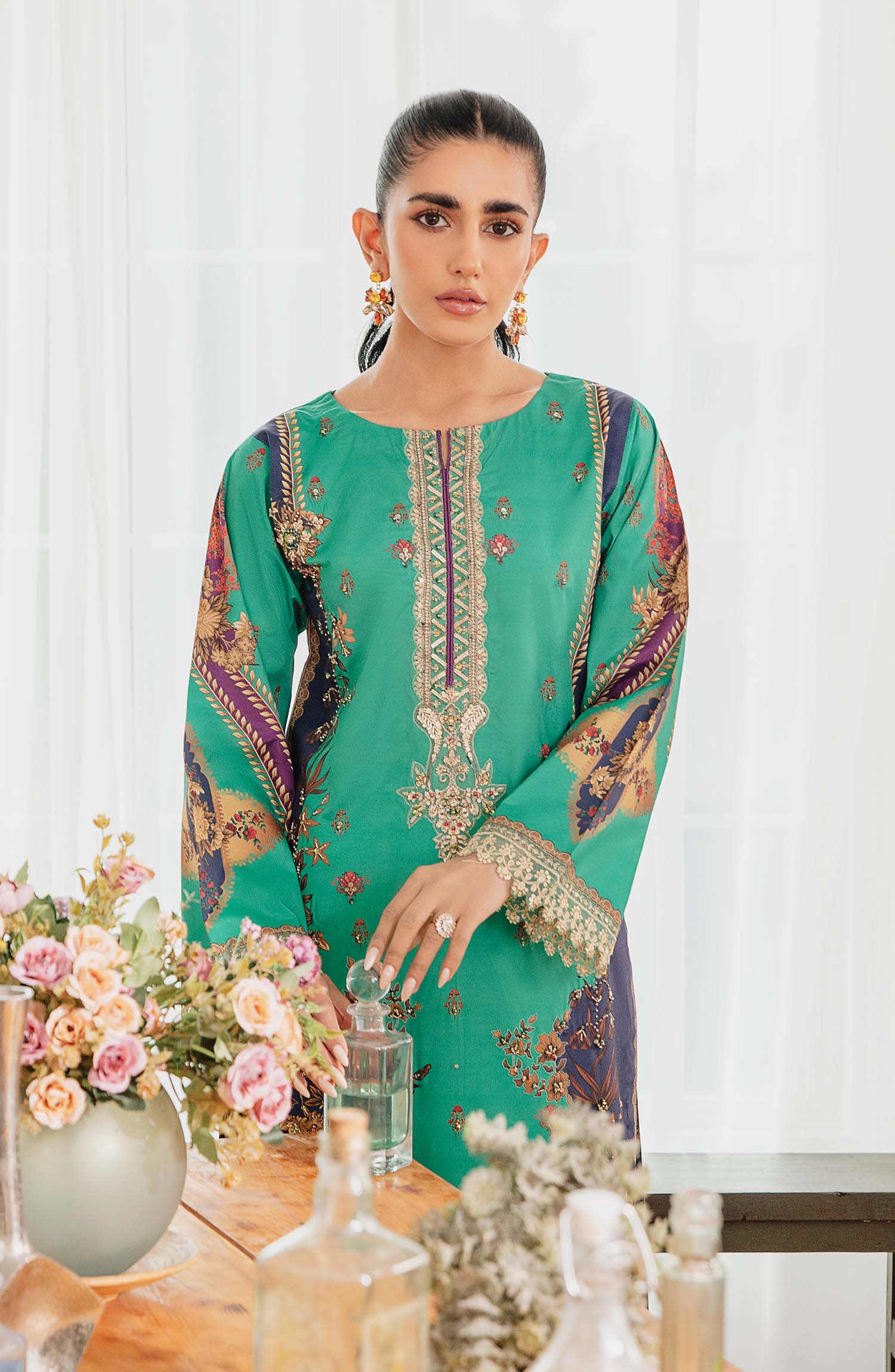 Shirt: Printed Crabe Silk Hand Work Front : 1 Meter. Printed Crabe Silk Back and Sleeves :1.65 Meter. Embroidered Hand Made Neck Line. Embroidered Front,Back and Sleeves Border. Embroidered Back Patch.