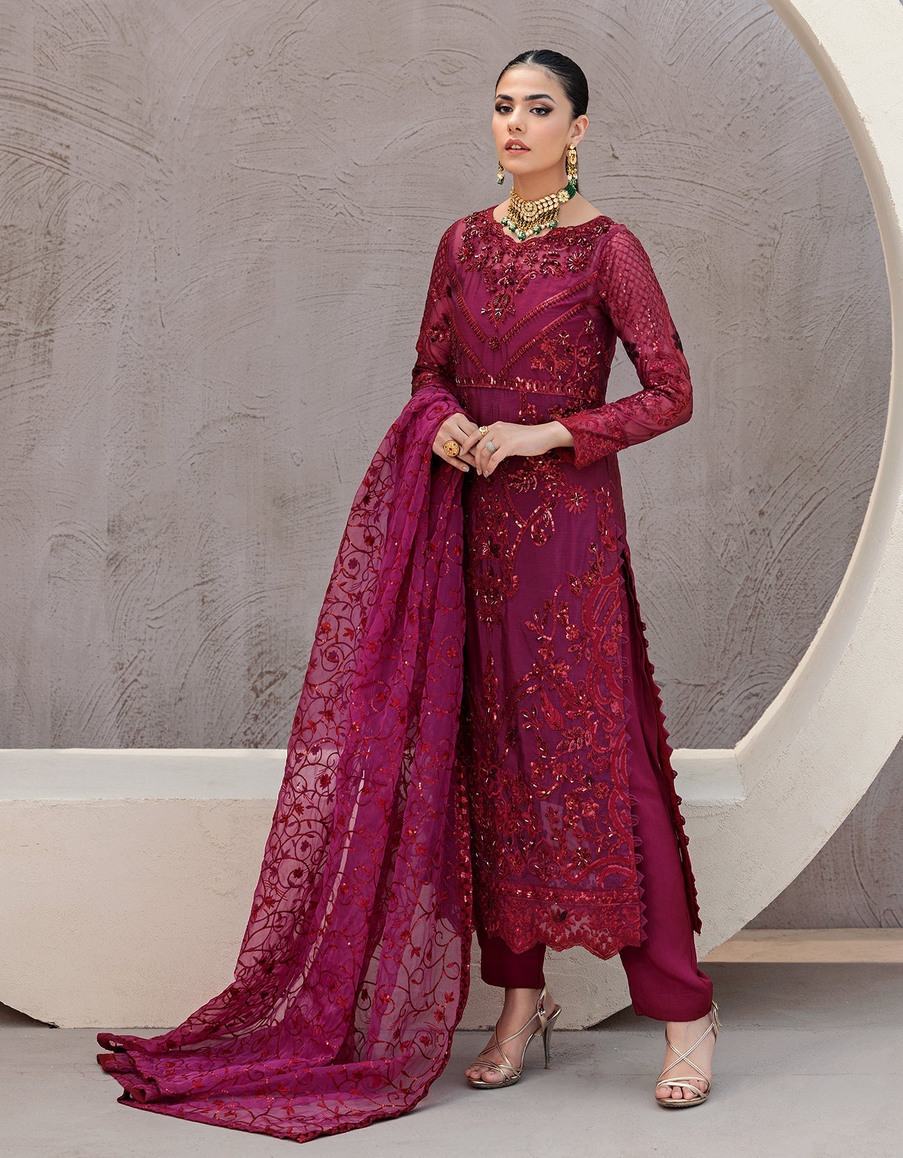 ORGANZA EMBROIDERED HAND MADE FRONT BODY. ORGANZA EMBROIDERED HAND MADE FRONT. ORGANZA EMBROIDERED BACK BODY. ORGANZA EMBROIDERED BACK. ORGANZA EMBROIDERED SLEEVES. ORGANZA EMBROIDERED DUPATTA. ORGANZA EMBROIDERED FRONT, BACK AND SLEEVES BORDER. DYED RAW SILK TROUSER